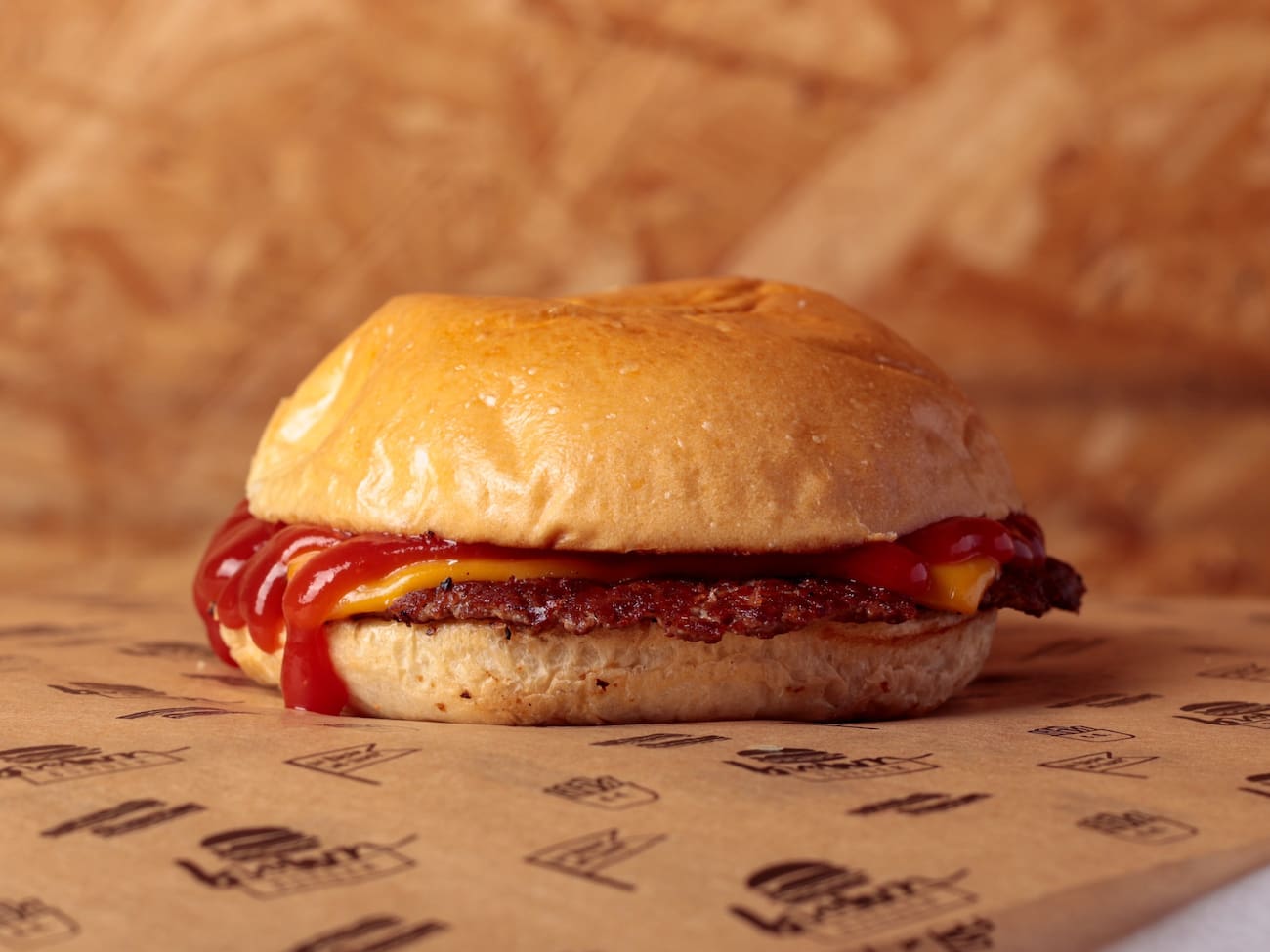 50g do nosso blend prensado na chapa, bem fininho e com uma crosta deliciosa, american cheese, pão.
